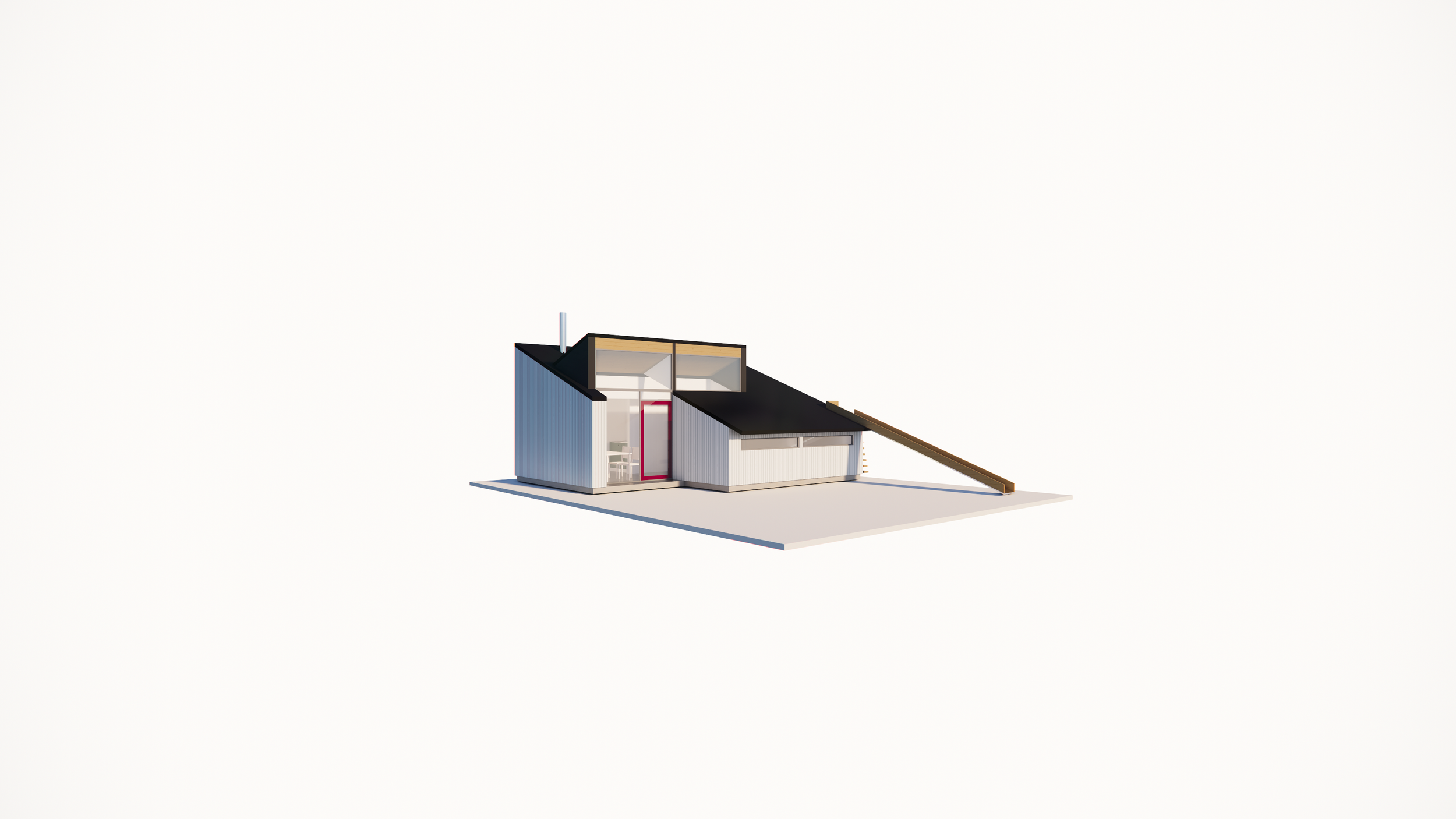Ett stugkoncept för aktiva platser. Allt från campingplatser och skidanläggningar till äventyrsområden. En rutschkana löper längs hustaket och uppmanar till lek.